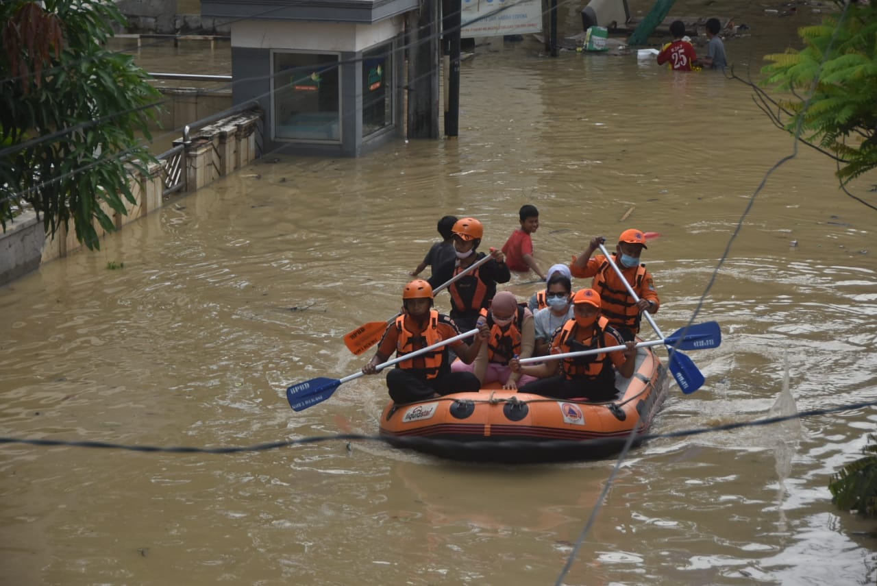 Ratusan rumah pun terendam banjir. Warga sejak Selasa dini hari juga telah diminta mengevakuasi kendaraannya ke tempat yang lebih tinggi. Ratusan rumah di RW 011 juga telah dimasuki air, warga bahkan harus naik ke lantai 2 rumahnya.