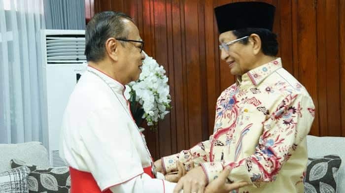 Dalam pertemuan tersebut, terlihat keakraban antara Menteri Agama Nasaruddin Umar dan Uskup Keuskupan Agung Jakarta, Kardinal Ignatius Suharyo. Keduanya berpelukan erat, mencerminkan hubungan persahabatan yang hangat.