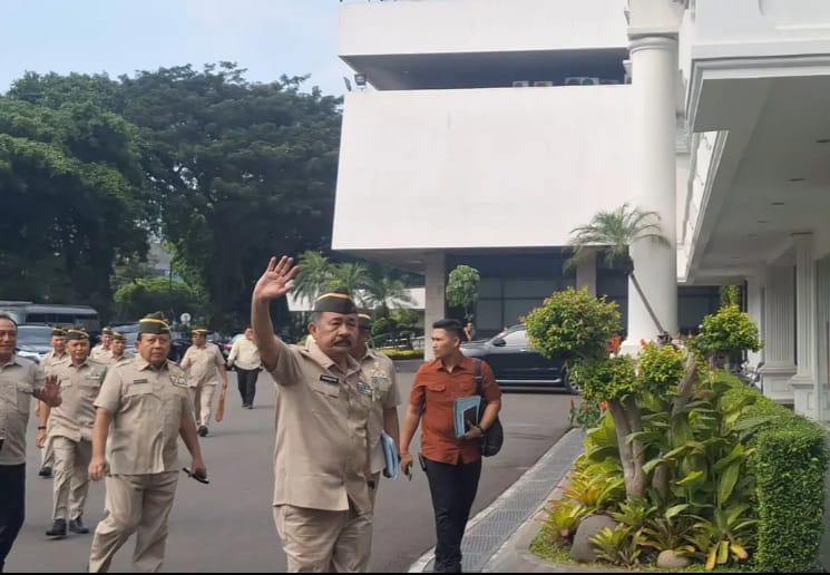 Sejumlah anggota PPAD yang dipimpin Plt. Ketua Umum PPAD, Mayjen TNI Purn Komaruddin Simanjuntak, tiba di kompleks Istana Kepresidenan dengan mengenakan seragam lengkap PPAD.