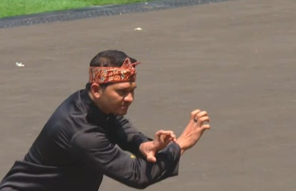 Aktor Iko Uwais memimpin pertunjukan tersebut. Dia tampil bersama mantan peraih medali emas pencak silat SEA Games 2011, Eko Wahyudi. Keduanya tampak mengenakan baju hitam.