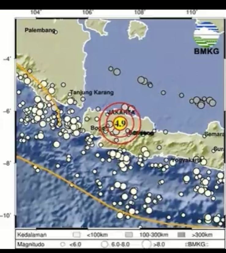 Energi Juang News, Jakarta– Gempa bumi dengan magnitudo 4,9 mengguncang wilayah Kabupaten Bekasi, Jawa Barat, pada Rabu (20/8/2025) pukul 19.54 WIB.