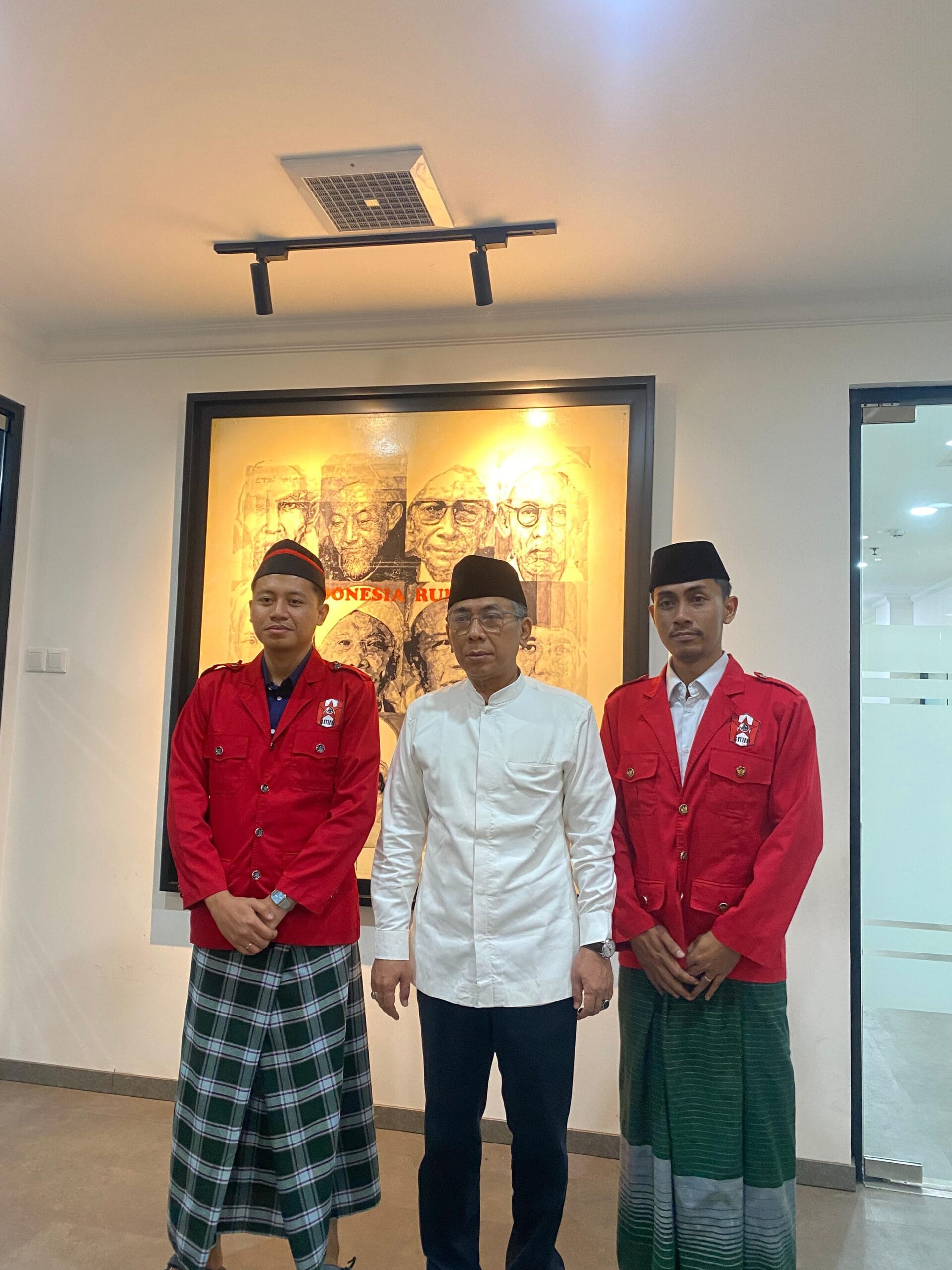 Ketua Umum Muhammad Risyad Fahlefi dan Sekretaris Jenderal Patra Dewa yang memimpin langusung rombongan DPP GMNI, datang mengenakan jas merah khas GMNI, peci hitam, serta sarung ala santri.
