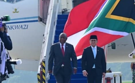 Pesawat kepresidenan Afrika Selatan mendarat sekitar pukul 07.40 WIB. Kedatangan Ramaphosa menandai dimulainya kunjungan resmi yang bertujuan memperkuat kemitraan strategis Indonesia–Afrika Selatan di berbagai sektor, mulai dari ekonomi, pertahanan, hingga teknologi.