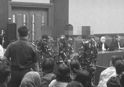 Hakim Ketua Purwanto S. Abdullah langsung menegur mereka, meminta mundur dari depan pintu area persidangan karena mengganggu proses hukum. Insiden ini memicu kritik pedas dari Imparsial, Amnesty Internasional Indonesia, dan pakar hukum, yang melihatnya sebagai pelanggaran regulasi dan ancaman terhadap profesionalitas TNI serta independensi peradilan.