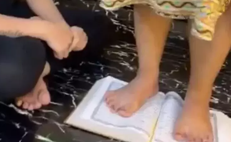 “Cara sumpah Al-Qur’an juga bukan seperti itu, terus yang memberatkan ini kitab suci Al-Quran, itu buat sumpah harusnya di atas kepala bukan di bawah kaki,” katanya.