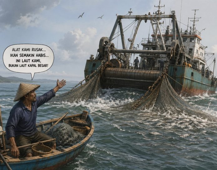 Ketika kapal pukat trawl terus beroperasi dan merangsek wilayah tangkap tradisional, negara dihadapkan pada satu pertanyaan mendasar: kepada siapa kebijakan perikanan berpihak?